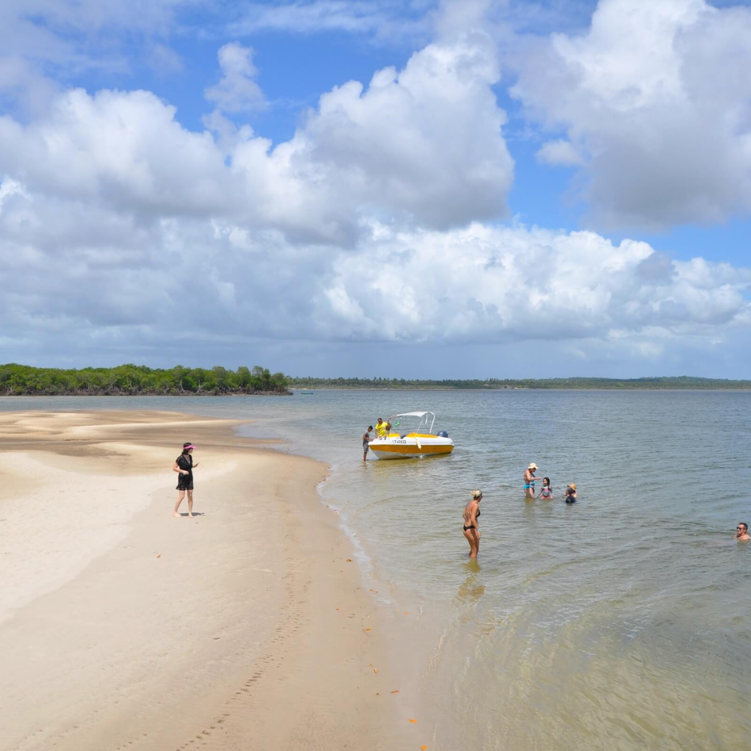 Banco de areia entre o rio Vaza-Barris e o mar, perfeito para passeios de catamarã.
